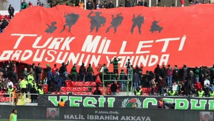 Taraftarlar ise stadın açık tribünlerinde devasa ebatlarda üzerinde asker resminin ve ‘Türk Milleti Ordusunun Yanında’ yazılı bez afiş açtı. Taraftarlar ayrıca maç öncesi sık sık 'şehitler ölmez vatan bölünmez' sloganları attı.