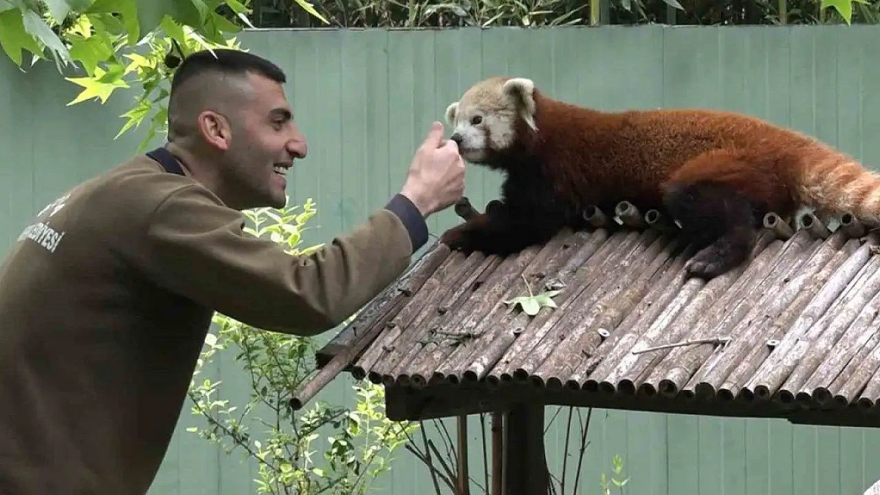 Bursa Hayvanat Bahçesi'nde kızıl pandaların bakımını gerçekleştiren Yasin Yurtlu, "Bambi 1 aydır bizimle beraber. İlk geldiğinde 20 günlük bir karantina süresi vardı. 10 gündür kendi alanına saldık. Diğer arkadaşıyla beraber zaman geçiriyor. Sabahları daha aktif hayvanlar, öğlenleri biraz daha ağır uyku modunda geçiyor. Günde 1 öğün yem veriyoruz. Elma, armut, muz ve ayrıyeten bambu ağaçlarıyla besleniyorlar. Sıcak havalarda klimalı odaları var 25 dereceden sıcak havalarda klimalı odalarını kullanıyorlar. Çok fazla zıplayan bir hayvan olmadığı için alanı bu şekil açık. Tırmanma özelliğine sahip oldukları için bazı ziyaretçilerimiz atlamıyorlar mı? Buradan çıkamıyorlar mı? Gibi sorular soruyorlar. Buradan çıkamazlar ona göre önlemini aldık, alanı o yüzden açık. Genelde daha sakin hayvanlar gün içinde daha çok dinlenerek geçiriyorlar uyuyarak geçiriyorlar. Sabahları biraz daha aktifler biraz daha hareketliler. Nesli tükenmekte olduğu için yeni gelen Bambi ile birlikte daha çok sayılarını artırmayı hedefliyoruz" dedi.