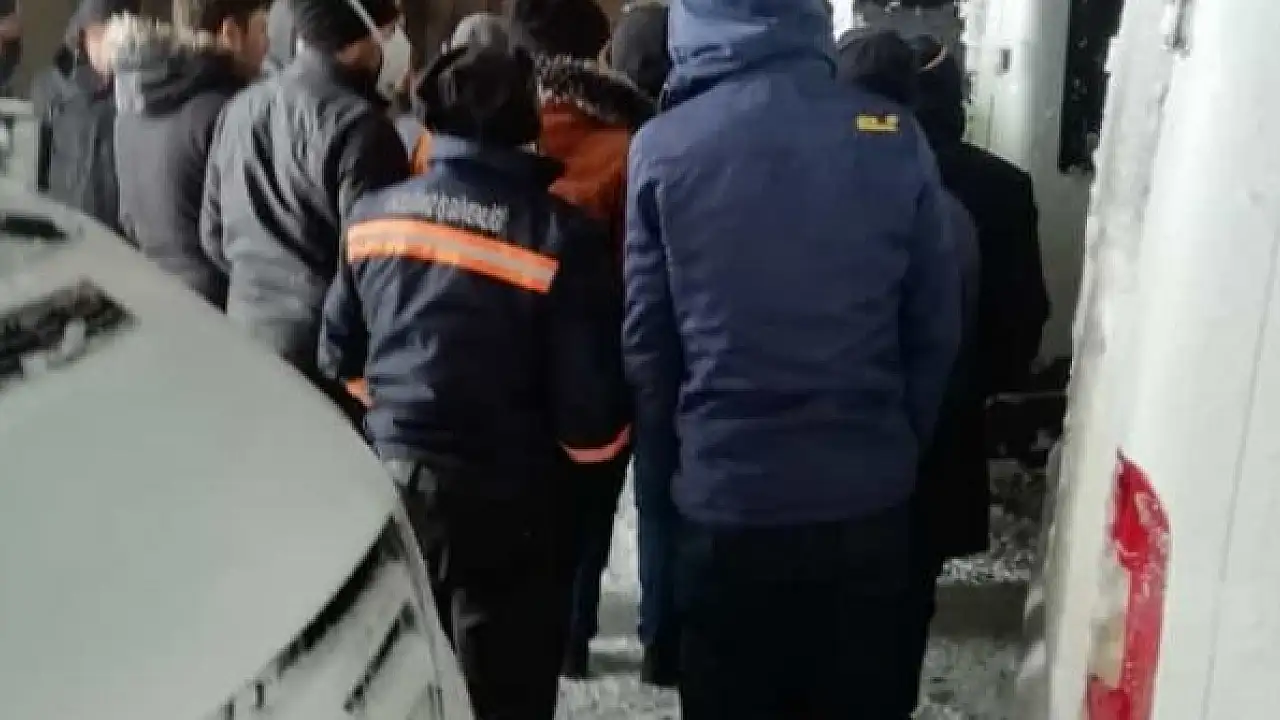 Toplamda 6 saat süren çalışmanın ardından işçiler evlerine ulaşırken, mahsur kalma görüntüleri de işçilerin cep telefonu kamerasına yansıdı.
