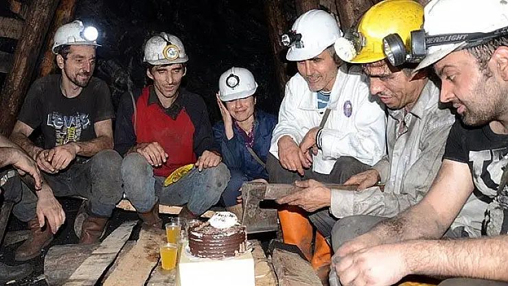 Zonguldak'ta kömür ocağında çalışan işçiler, yerin metrelerce altında pasta keserek yeni yılın gelişini kutladı.