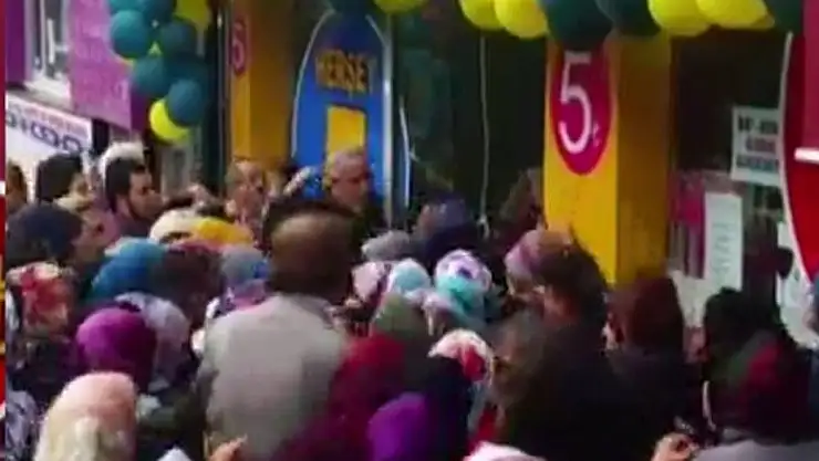 Kapının açılmasıyla birlikte içeri girmek isteyen vatandaşlar bir biri ile yarıştı. Yaşanan izdihamda bazı vatandaşlar ezilme tehlikesi atlattı.