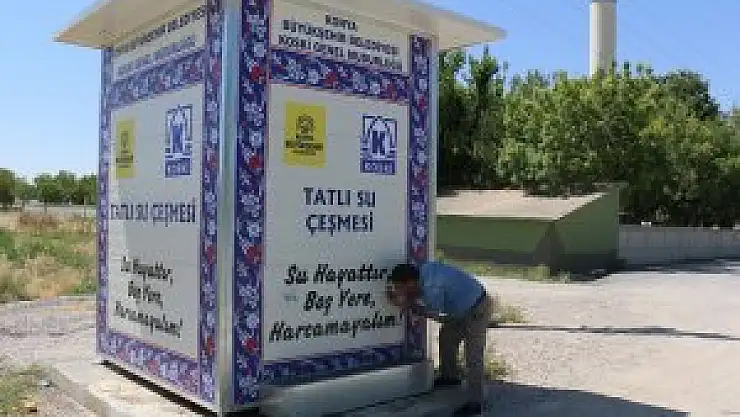 Konya merkezde bin tatlı su çeşmesi ile hizmet vererek Türkiye'ye örnek olan Konya Büyükşehir Belediyesi KOSKİ Genel Müdürlüğü, Yeni Büyükşehir Yasası kapsamında merkez dışındaki mahallelere de 5 bin litrelik tatlı su sebilleri yapıyor.