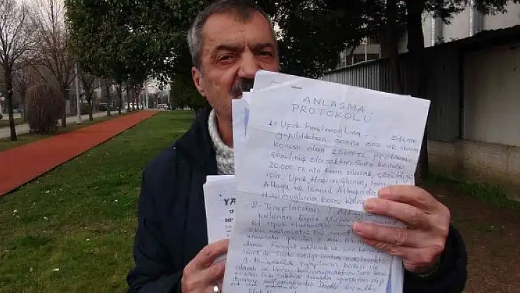59 yaşındaki Ufuk Haşimoğlu, 2012 yılında Yalova'da inşaat halindeki bir konut projesinden 65 bin TL'ye 95 metrekarelik daire satın aldı. İnşaat tamamlandıktan sonra dairenin 63 metrekare çıkmasıyla evi teslim almadı. Olayın ardından hukuksal süreç başlatan Haşimoğlu, başlattığı davayı 2014 yılında kazandı. Dava neticesinde kendisine 94 bin 500 TL tazminat ödenmesine karar verildi. Fakat müteahhidin kendisine ne bir ödeme yaptığını ne de daireyi verdiğini söyleyen Haşimoğlu, parasını istemeye gittiğinde ise müteahhit Cesim Y. tarafından darp edildi.