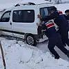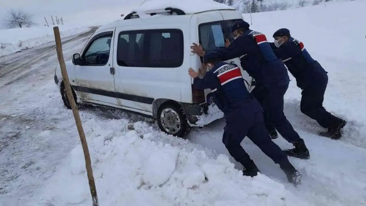 Çorum'un Oğuzlar ilçesinde kar yağışı nedeniyle yolda mahsur kalan diyaliz hastasının yardımına jandarma ekipleri yetişti.