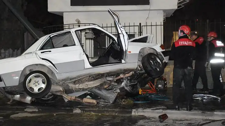 SİVAS'ta bir otomobilin makas atması sonucu, sürücüsünün kontrolünden çıkan başka bir otomobilin yol kenarındaki aydınlatma direğine çarptığı kazada...