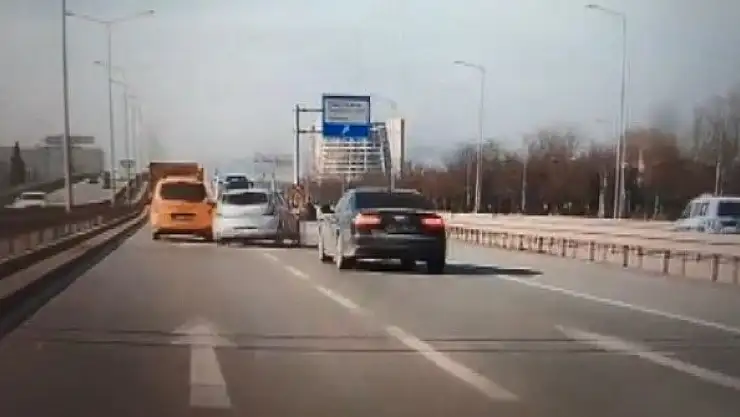 Kocaeli'nde makas atarken kontrolü kaybeden sürücü, yol kenarındaki bariyerlere çarptı. Aracın içindekiler ise kendi kazalarını çekti.