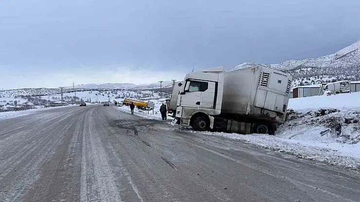 Malatya'nın Doğanşehir ilçesi Kelhalil mevkiinde makas kıran tırın sürücüsü yaralandı.