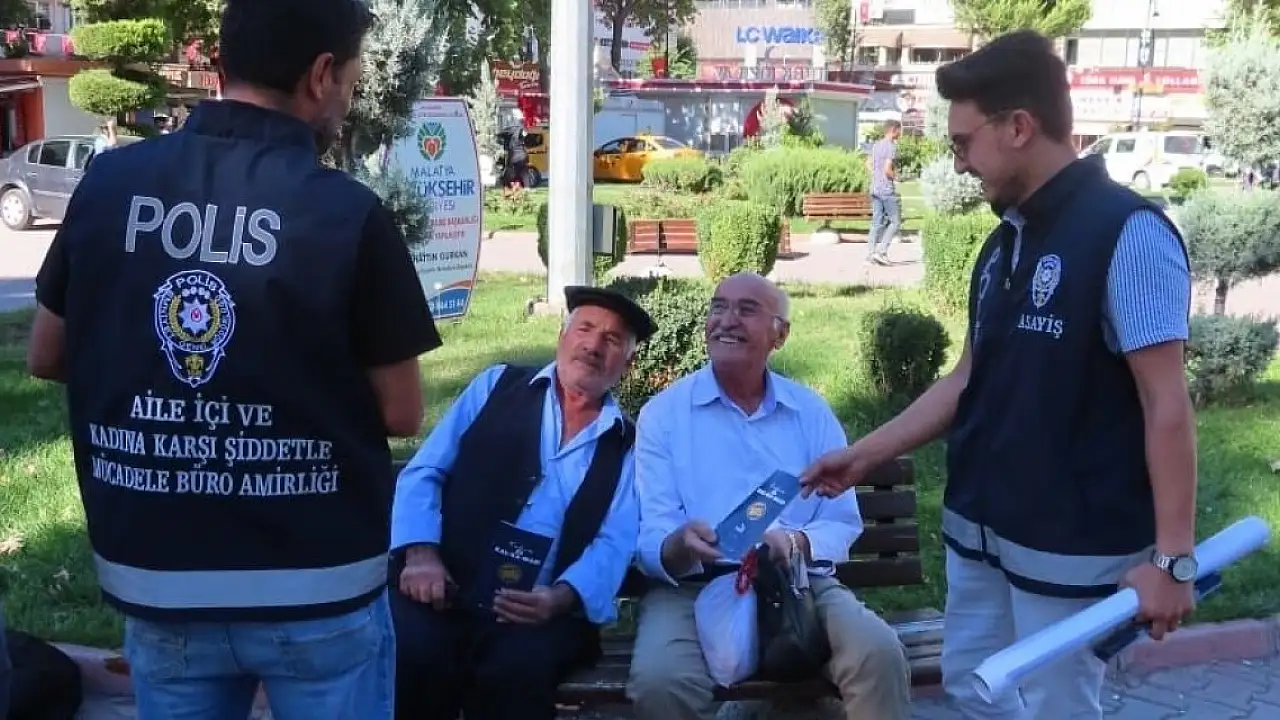 Malatya'da polis ekipleri "Kadına Şiddette" farkındalık oluşturulması amacıyla kent merkezinde vatandaşlara el broşürü dağıttı.
