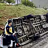 Öte yandan bir hafta önce de aynı noktada başka bir araçta yine virajı alamayarak direksiyon hakimiyetini kaybetmesi sonucu devrilmiş kazada 2 kişi yaralanmıştı.
