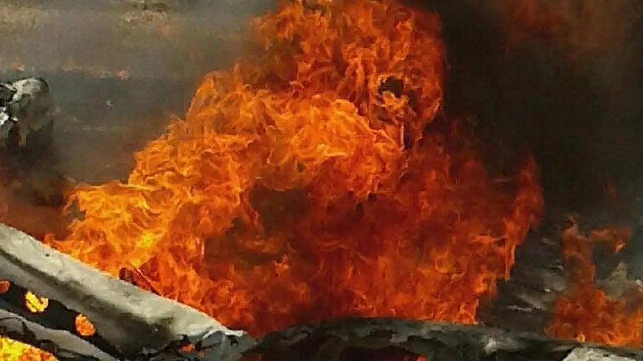 Sabah erken saatlerde düşen uçağın enkazı alev aldı.