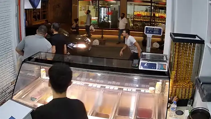 Beyoğlu'nda motosikletli iki saldırgan, cadde üzerindeki bir manavdan alışveriş yapan şahsa silahlı saldırı düzenledi. Saldırı anı kameralara yansırken, olayda ölen ya da yaralanan olmadı. Polis ateş açan şahısları yakalayarak gözaltına alırken, saldırının manavdan alışveriş yapan bir kişiye yönelik olduğu ortaya çıktı.
