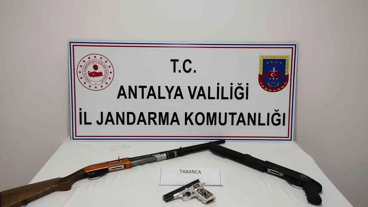 Antalya'nın Manavgat ilçesinde kasten adam öldürme suçundan hükümlü olup cezaevinden izinli çıkan bir şahıs ile 3 adet suç kaydı bulunan şahıs, jandarmanın düzenlediği operasyonda tabanca ve av tüfeği ile yakalandı.
