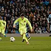Karşılaşmanın son bölümlerinde oyunu rakip yarı alana yıkan, ancak rakibinin kalabalık savunmasını geçemeyen Barcelona, Messi'nin, Zabaleta tarafından düşürülmesiyle 90. dakikada penaltı kazandı.