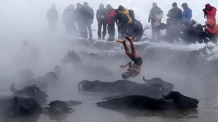 Bitlis'in Güroymak ilçesinde kış aylarında vatandaşların manda ve atlarını temizlediği kaplıcalar, fotoğraf tutkunlarının ilgi odağı oluyor.