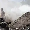 Manisa'da, güneşin yakıcı sıcağında kömürün karasına alın teri karışan mangal kömürü işçilerinin yaşamları, yılın 12 ayı çadırda geçiyor.