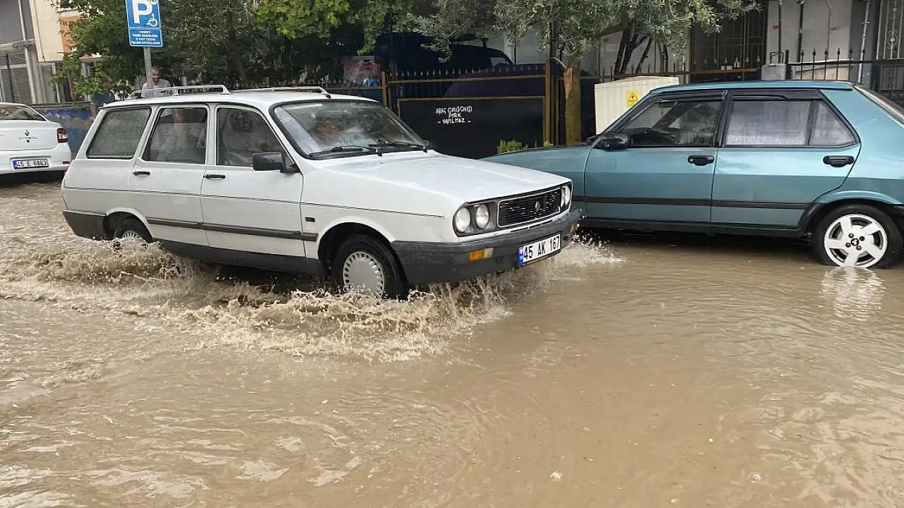 MANİSA'da dolu ile karışık yağan sağanak hayatı olumsuz etkiledi. Cadde ve sokaklar göle döndü, vatandaşlar zor anlar yaşadı.