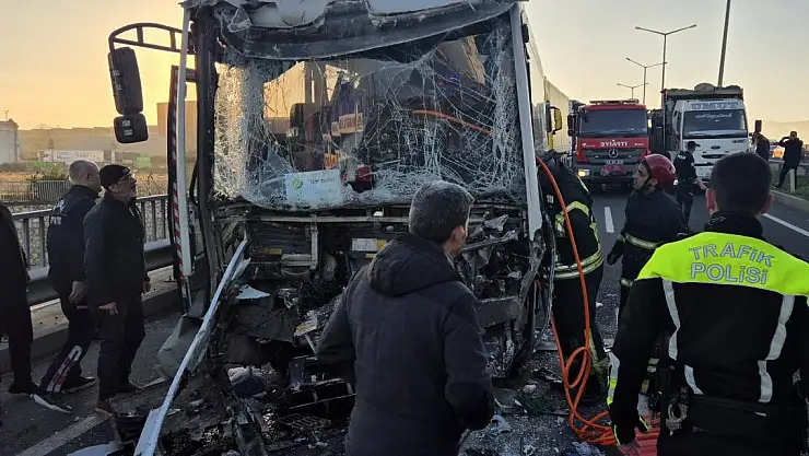 İzmir'deki fabrikadan Turgutlu'ya işçi taşıyan midibüs, tıra İzmir-Turgutlu kara yolu Turgutlu Organize Sanayi Bölgesi Viyadüğü geçişinde arkadan çarptı.