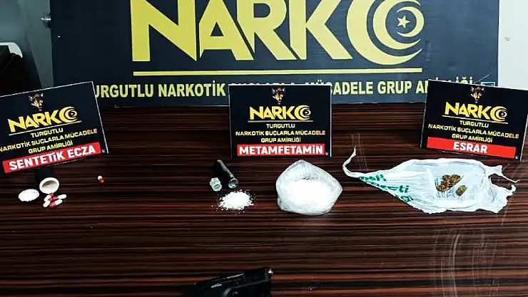 MANİSA'nın Turgutlu ilçesinde, otele düzenlenen operasyonda bir miktar uyuşturucu madde ile 1 ruhsatsız tabanca ele geçirildi.