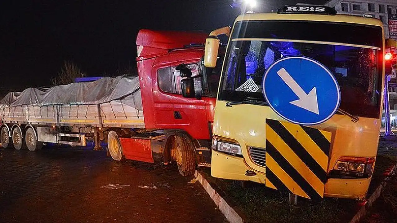 Manisa Turgutlu'da bir tırın işçileri taşıyan midibüse çarpması sonucu 5 kişi yaralandı.
