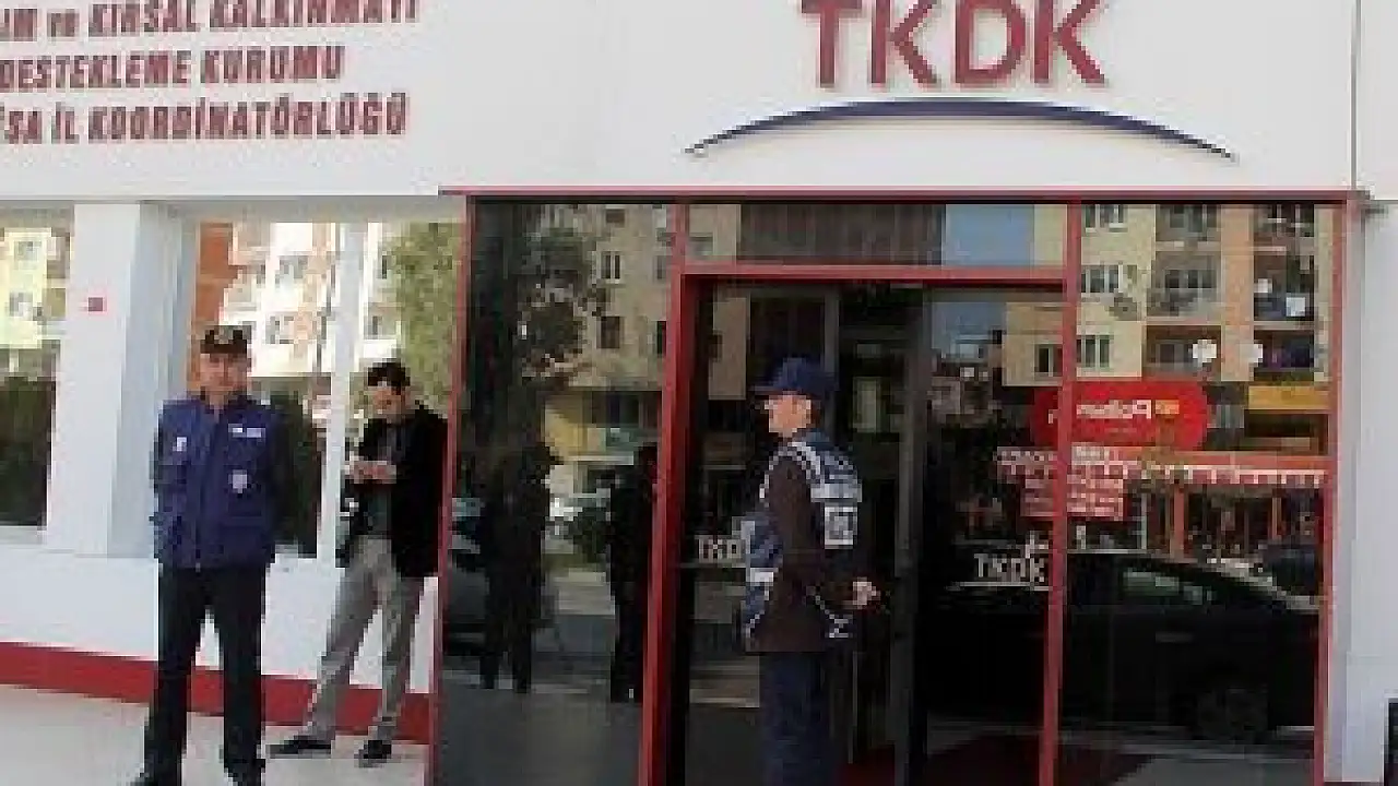 Edinilen bilgiye göre, Manisa Emniyet Müdürlüğü'ne bağlı Kaçakçılık ve Organize (KOM), Terörle Mücadele (TEM) ile Çevik Kuvvet Şube Müdürlüklerine bağlı ekipler, Mimar Sinan Bulvarı üzerindekiTKDK Manisa İl Koordinatörlüğü'nde geldi.