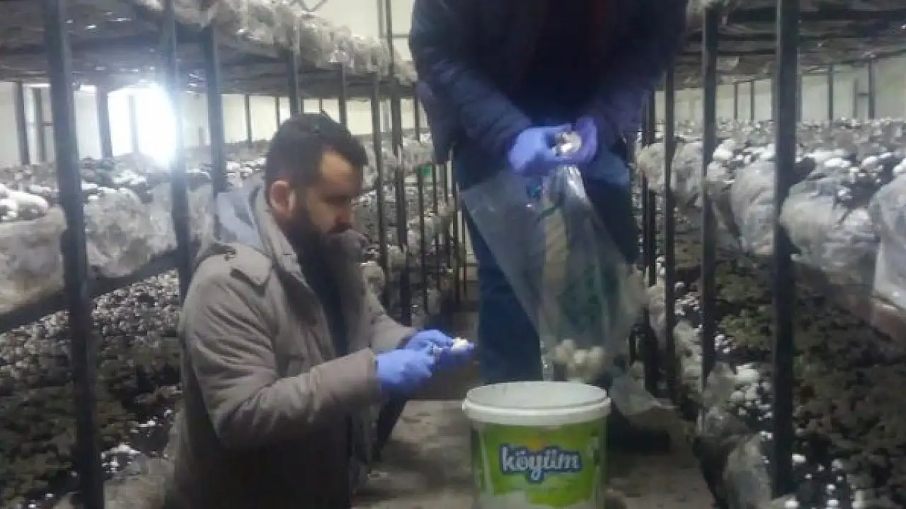 Akören ilçesinde mantar üretim seralarında denetim yapıldı.