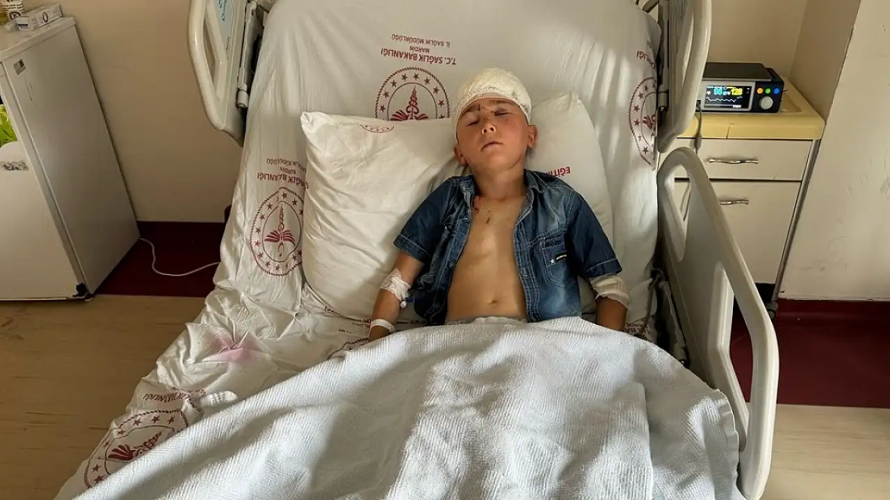 Başından ve vücudunun çeşitli yerlerinden yaralanan çocuk, çevredekilerin yardımıyla kurtarıldı.