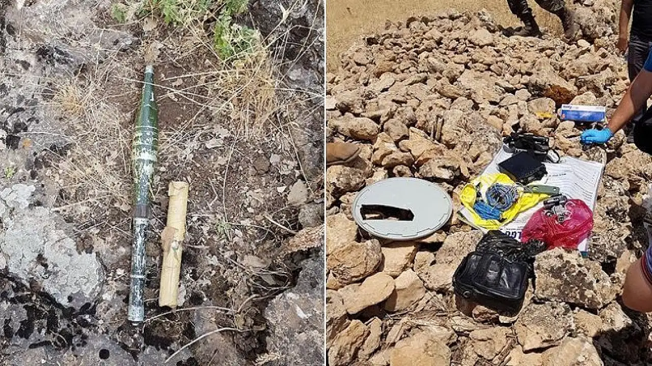 Mardin'in Savur ilçesinde terör örgütü PKK'ya yönelik operasyonda roket başlığı, roket sevk fişeği, telsizler ve kamera ele geçirildi.