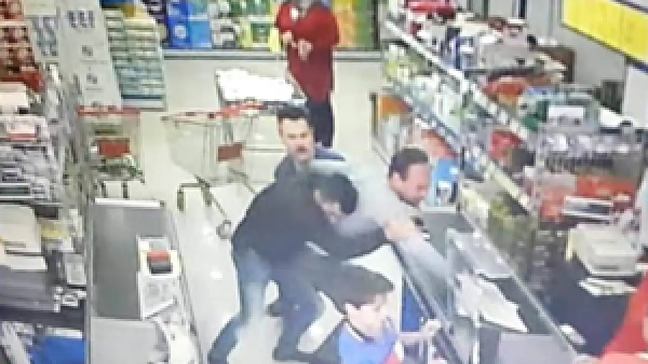 Konya’da, bir marketten peynir hırsızlığı yapmak istediği sırada fark edilen şüphelinin kendisine müdahale eden market çalışanlarıyla boğuşma anı güvenlik kamerası tarafından kaydedildi.