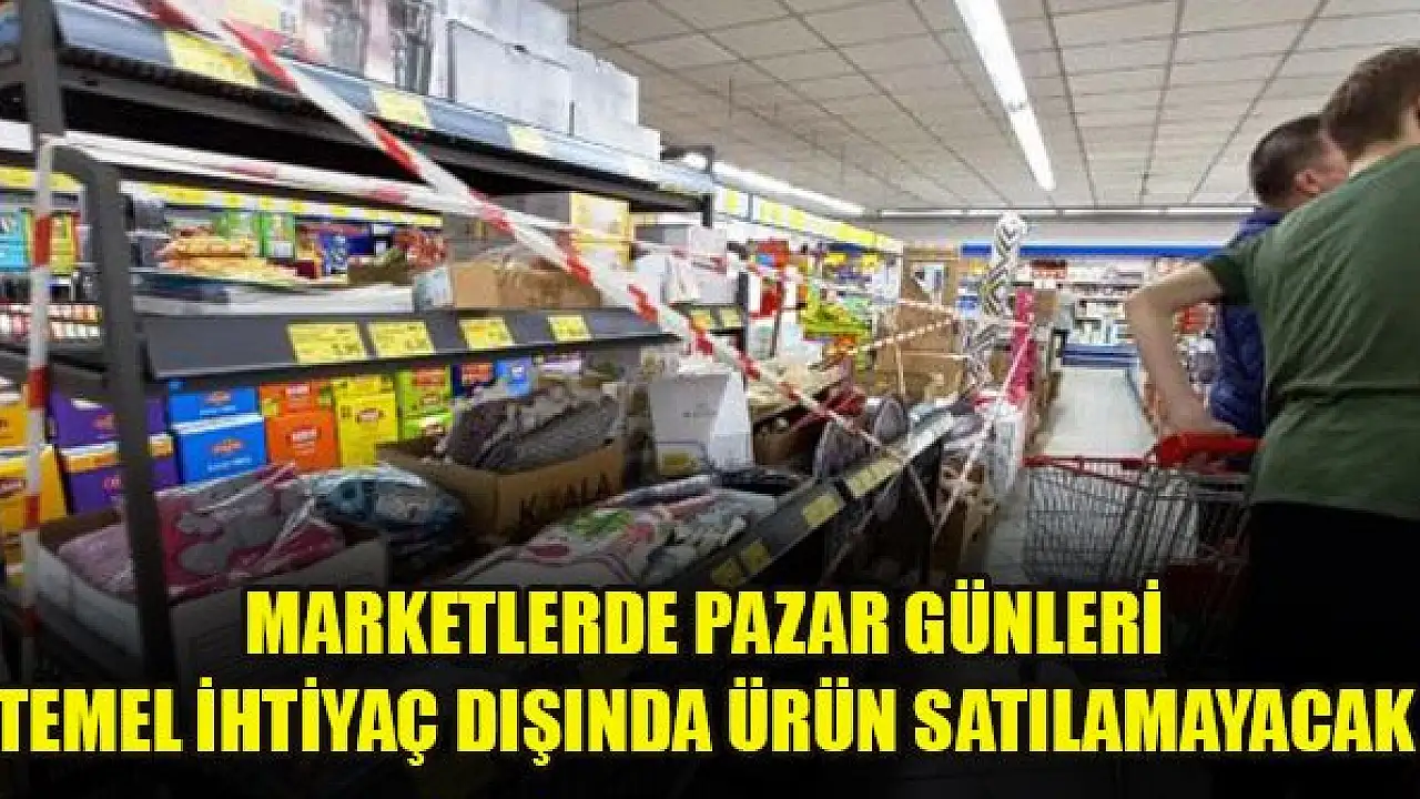 Pazar günleri marketlerde (zincir ve süper marketler dahil) vatandaşların zorunlu temel ihtiyaçları kapsamındaki ürünlerin dışında herhangi bir ürün satışına izin verilmeyecek.