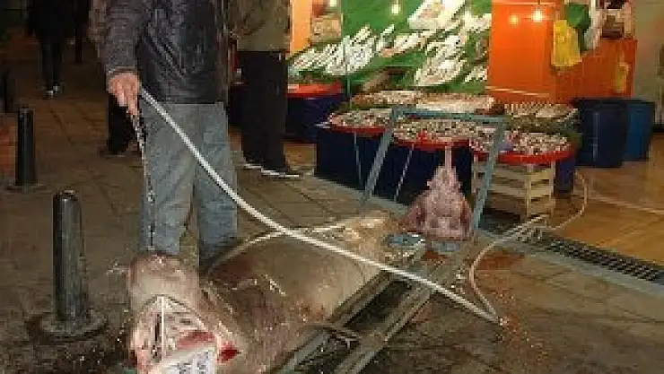 Balıkçı Zafer Tunalı, yaptığı açıklamada, köpek balığının Marmara Denizi'nde Şarköy açıklarında yakalandığını kendilerinin de balığı alarak dükkanlarında sergilediklerini söyledi.