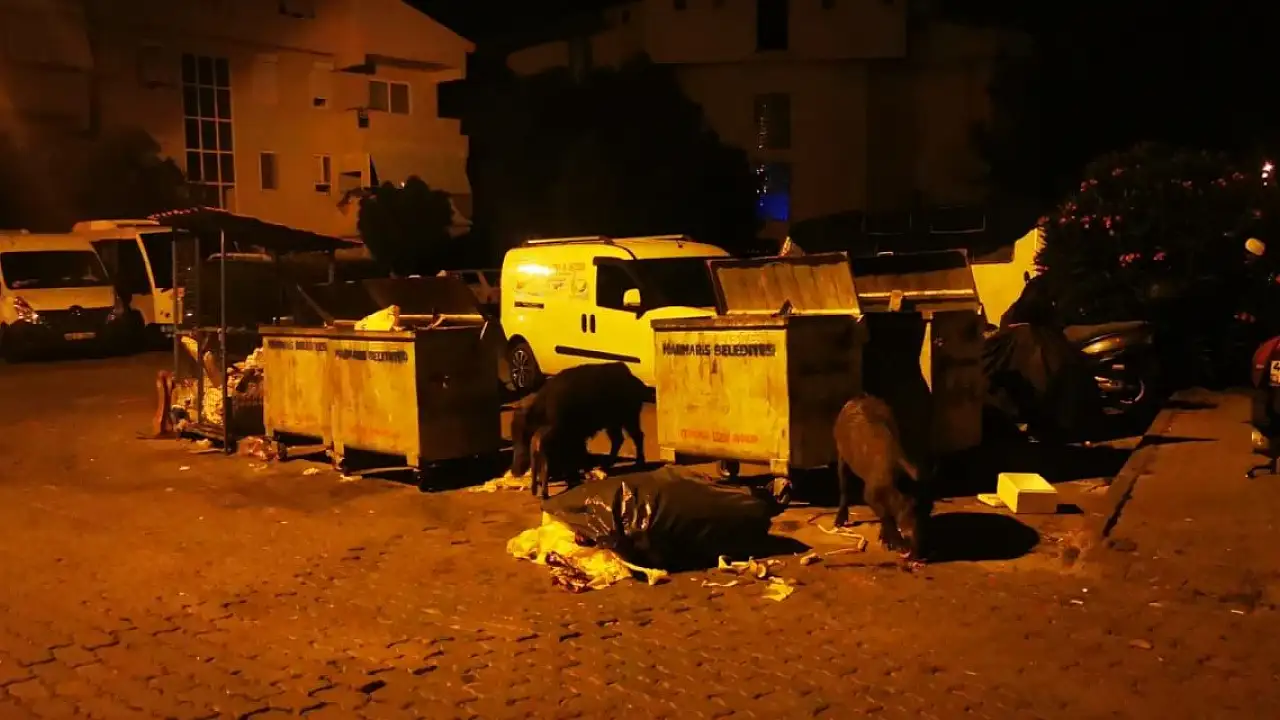 Turizm kenti Muğla'nın Marmaris ilçesinde yaban domuzları şehir hayatına alışarak korkusuzca irili ufaklı sokak aralarında gezip çöpleri karıştırıp, evlerin bahçelerine giriyor. Evlerinin bahçesinde sebze fidanı diken vatandaşlar sabaha kadar domuz nöbeti tuttuklarını belirtiyor.