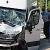 Bu arada, kaza anı ise yakındaki bir işyerinin güvenlik kameralarına yansıdı. Görüntülerde sol şeritten sağdaki işyerine dönüş yapmaya çalışan tıra minibüsün çarptığı anlar yer aldı.