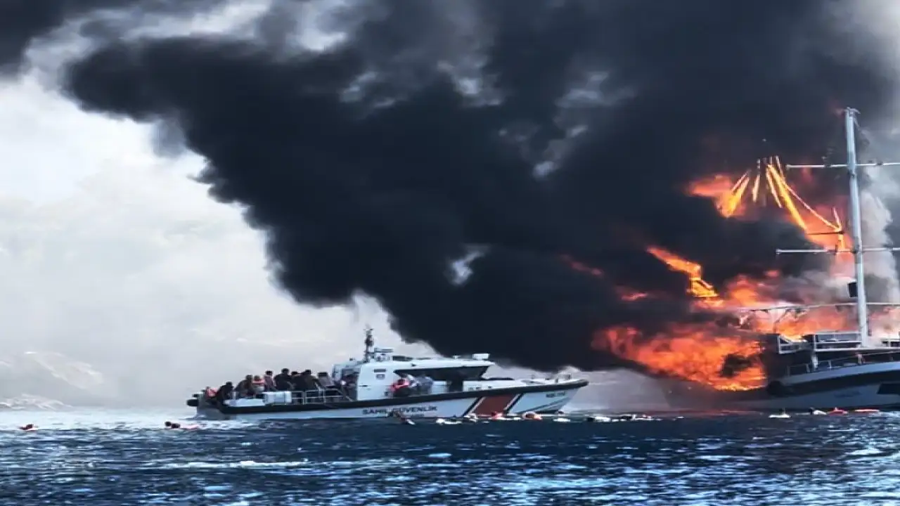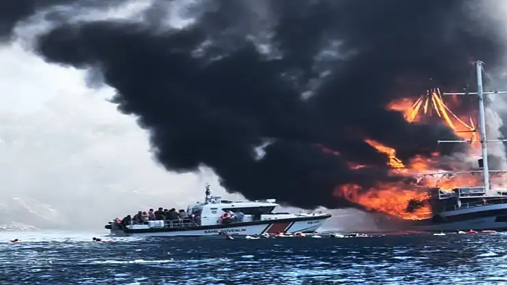 Marmaris'te bir tur teknesi yolcuları aldıktan sonra denize açıldı. Seyir halindeki tekne, İçmeler Keçi Adası açıklarında henüz belirlenemeyen nedenle alev aldı. Alevler kısa sürede ahşap teknenin tamamını sardı.