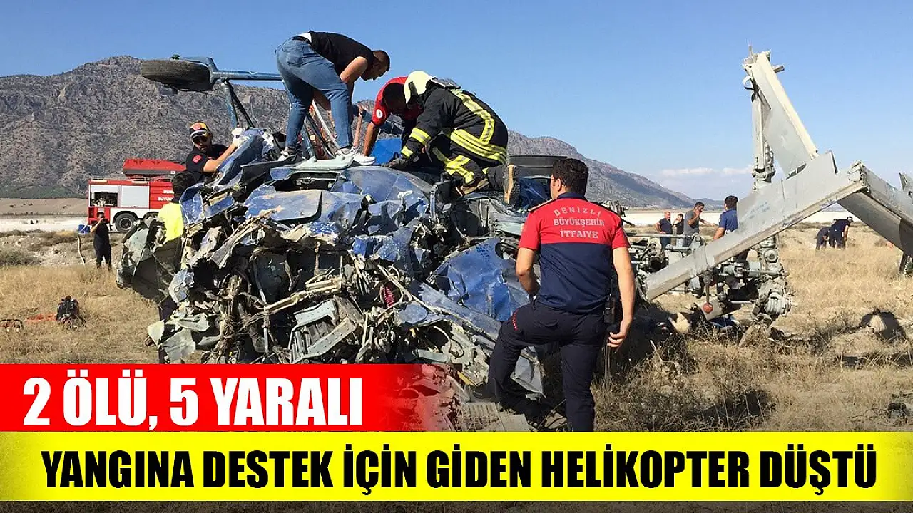 Kastamonu'dan Marmaris'teki yangın söndürme çalışmalarına destek için giden yangın söndürme helikopterinin Denizli'nin Çardak ilçesi yakınlarında düşmesi sonucu ilk belirlemelere göre 2 kişi öldü, 1'i ağır 5 kişi de yaralandı.