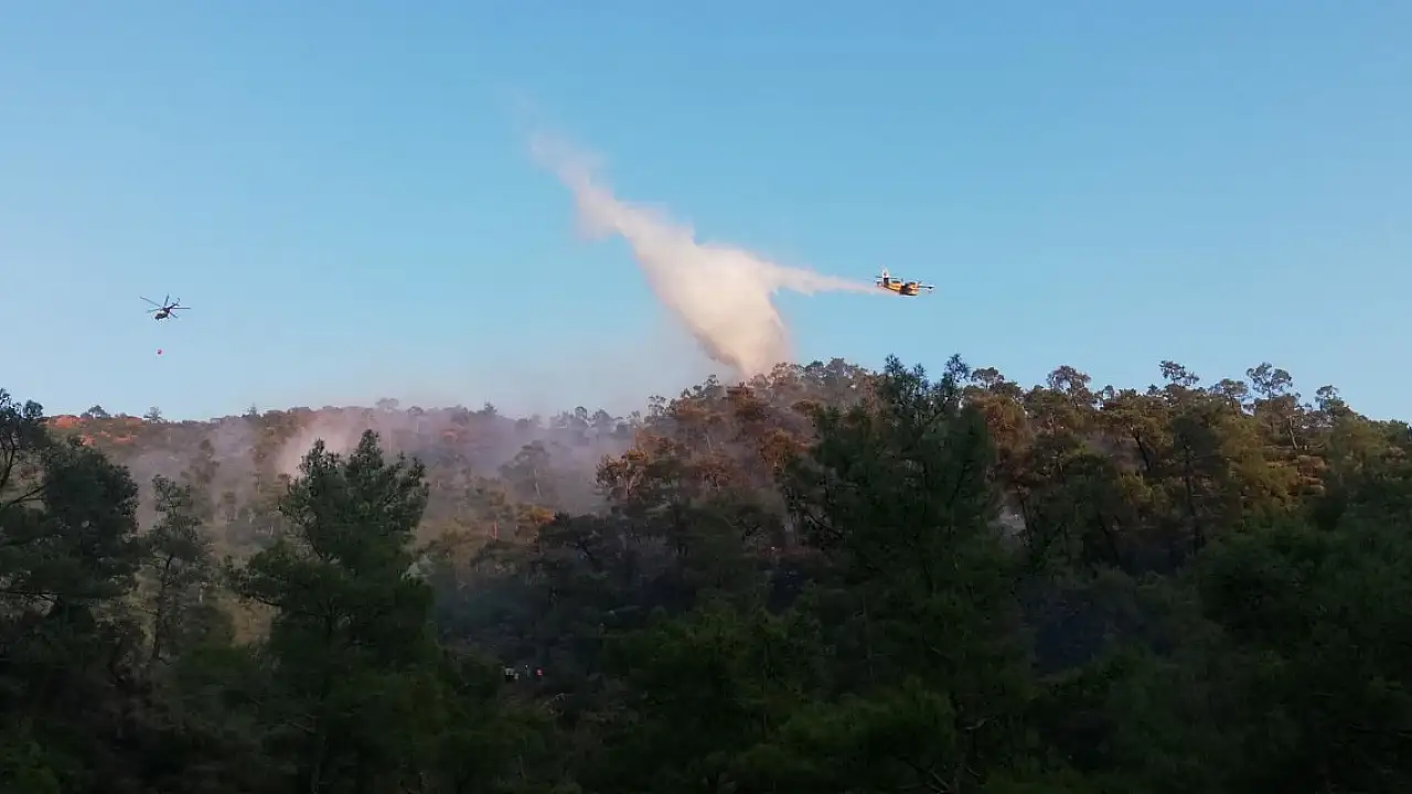 Marmaris ilçe merkezindeki otogarın üst kısmındaki kızılçam ağaçlarıyla kaplı ormanda dün saat 18.00 sıralarında yangın çıktı. Bölgeden yükselen dumanı fark eden ilçe halkı, 112 Acil Çağrı Merkezi'ne ihbarda bulundu. Bunun üzerine bölgeye sevk edilen Muğla Orman Bölge Müdürlüğü'ne ait 5 uçak ve 10 helikopter ile havadan, 34 arazöz, 10 su tankeri ve 200 işçi ile karadan müdahale edildi. Hava araçların hızlı ve etkin müdahalesi sonucu alevlerin önü tepeye ulaşmadan kesildi. Söndürülen yangında 2 hektar orman zarar gördü.