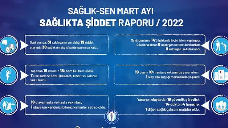 Sağlık-Sen tarafından yapılan yazılı açıklamada, mart ayında sağlık çalışanlarına yönelik meydana gelen şiddet olaylarında, şubat ayına göre azalma olduğu belirtildi. Şubat ayında 21 şiddet olayı yaşanmasına karşın mart ayında bu rakamın 19'a düştüğü kaydedilen açıklamada, "31 saldırgan tarafından gerçekleştirilen olaylarda, 38 sağlık çalışanı mağdur oldu. Ay boyunca yaşanan 19 şiddet olayının 18'ine hasta ve hasta yakınları neden olurken, 1'ine kendini bilmez kişiler sebebiyet verdi. Sağlıkta şiddetin en can yakıcı yanı ise olayların hasta ve hasta yakınları tarafından gerçekleştirilmesi. Mart ayında 19 şiddet vakasının 18'i hem sözlü hem fiili, 1'i sözlü olarak vuku buldu. Şiddet olaylarının en çok yaşandığı yer yine hastaneler oldu. 19 şiddet olayının 18'i hastanelerde vuku bulurken, 1'i aile sağlığı merkezinde yaşandı. Ay boyunca 19 güvenlik görevlisi, 14 doktor, 4 hemşire ve 1 diğer sağlık çalışanı şiddete maruz kaldı. Mart ayı boyunca yaşanan şiddet vakalarına sebebiyet veren 31 saldırganın 14'ü hakkında herhangi bir işlem yapılmadı. Gözaltına alınan 8 saldırgan serbest bırakılırken, 9 saldırgan tutuklandı" denildi.