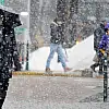 Sabah saatlerinde Konya merkezinin genelinde etkili olan yağmur yağışı sonrası lapa lapa kar yaşığı etkisini göstermeye başladı.