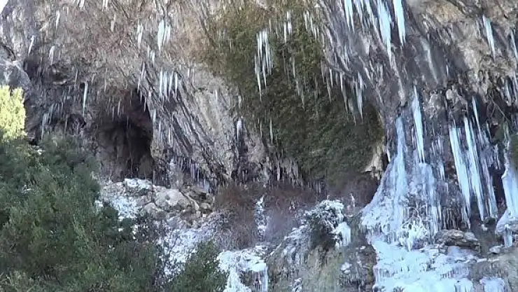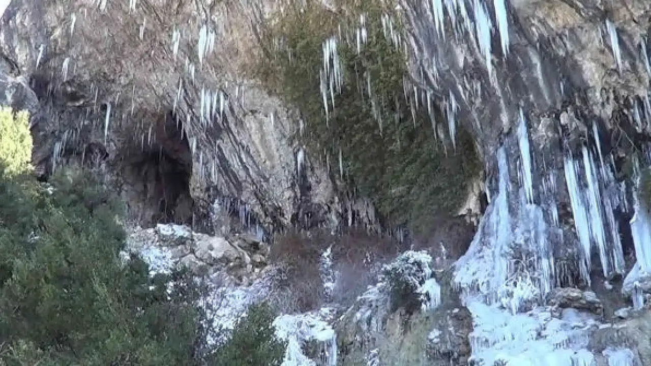 Denizli'de Mart ayında yaşanan aşırı soğuklar, 1400 rakımdaki Zeytin Yaylası Şelalesini dondurdu.