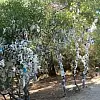 Çanakkale'nin Ayvacık ilçesine bağlı Adatepe Köyü'nde bulunan Zeus Altarı'nı (Sunağı) görmeye gelenler, ağaçlara çaput bağlayarak, dilek tutuyor.