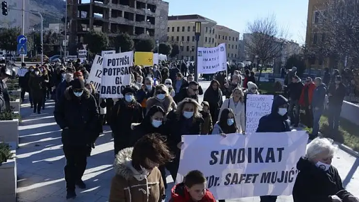 Članstva sinidikata zdravstvenih radnika Hercegovačko-neretvanskog kantona (HNK) i Sveučilišne kliničke bolnice Mostar ponovo su na ulicama Mostara tražili ostvarenje svojih prava, tačnije potpis novog Kolektivnog ugovora, u skladu s istim koji su ranije potpisali predstavnici Sindikata doktora i stomatologa, javlja Anadolu Agency (AA).
