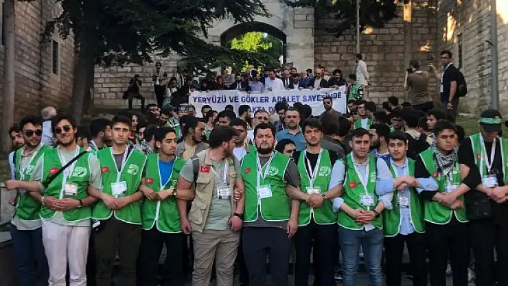 Kalabalık, saldırıda hayatını kaybedenlerin isimlerinin anons edildiği sırada "burada" diye bağırdı. Saldırıda hayatını kaybedenlerin fotoğraflarının basılı olduğu pankartları taşıyan grup, "Katil İsrail Filistin'den defol" ve "Mavi Marmara Onurumuzdur" diye slogan attı. Fatih Camii avlusundan yürüyüşe başlayan kalabalık Fevzipaşa Caddesi'nden geçerek Edirnekapı'ya ulaştı.