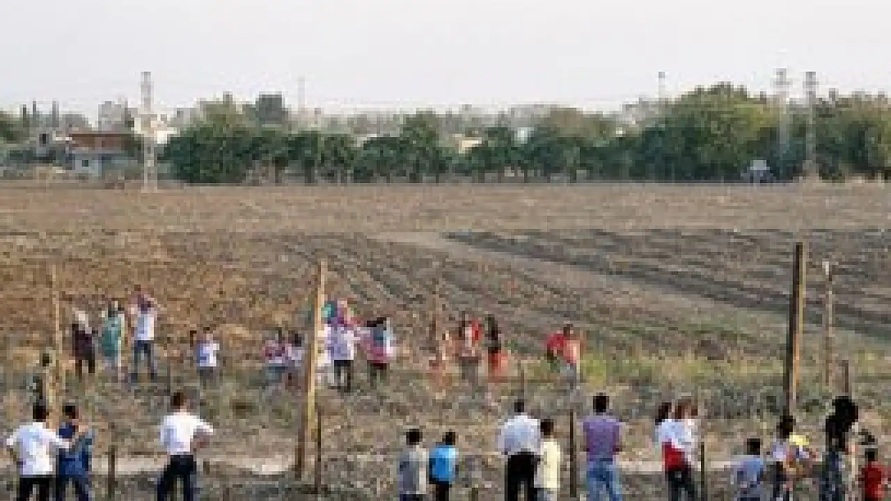 Nusaybin'de Suriye'ye açılan sınır kapılarının kapalı olması nedeniyle vatandaşlar mayınlı alanların kenarında karşılıklı bayramlaştı.