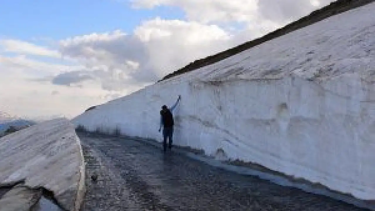 Bitlis'in Tatvan ilçesi sınırlarında yer alan Nemrut Dağı'nda, mayısın ortalarına gelinmesine rağmen karlar erimedi.