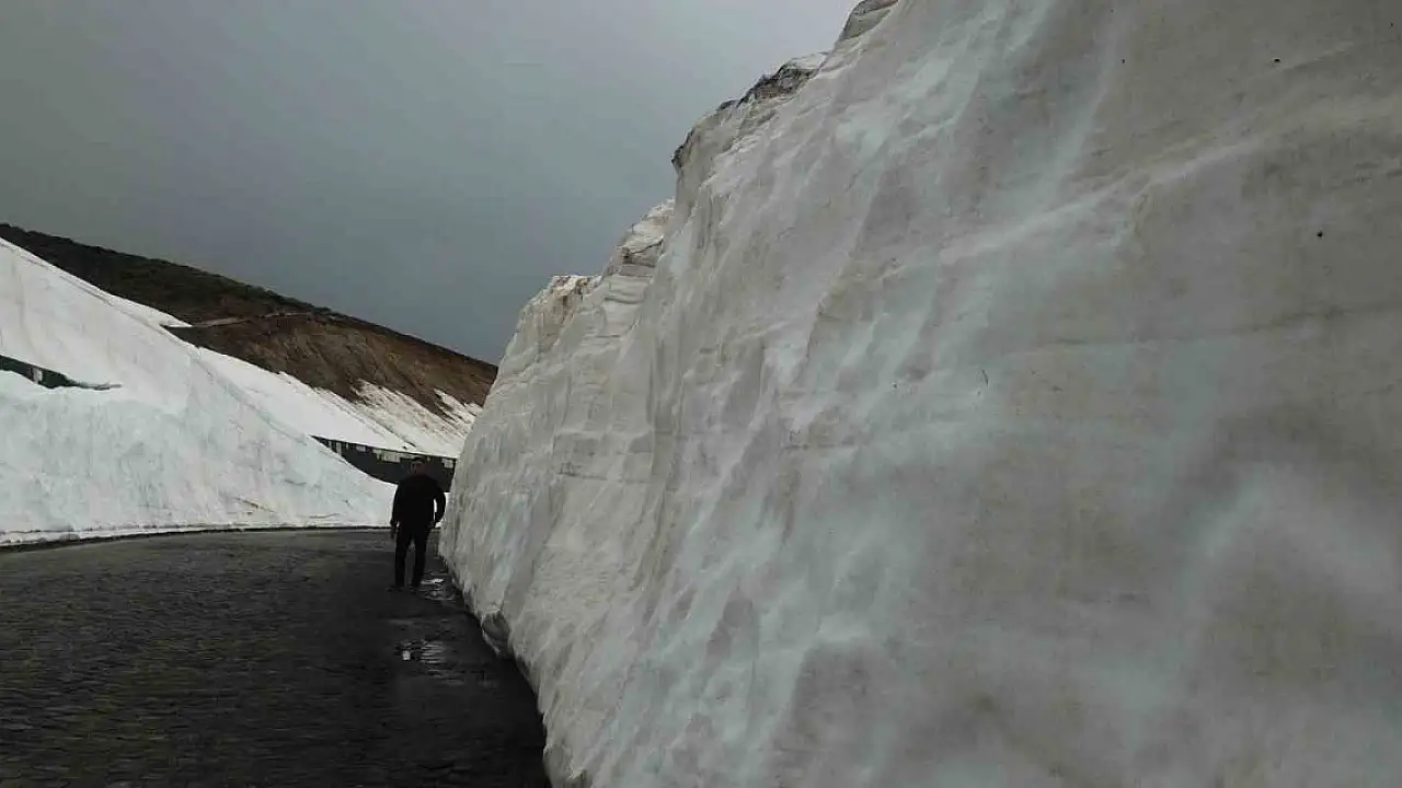 Kalderayı görmek için zirveye çıkan ziyaretçilerden Enes Akar, 5 metreyi bulan kar tünelleri arasında zirveye ulaşmanın ayrı bir keyif olduğunu ifade etti.