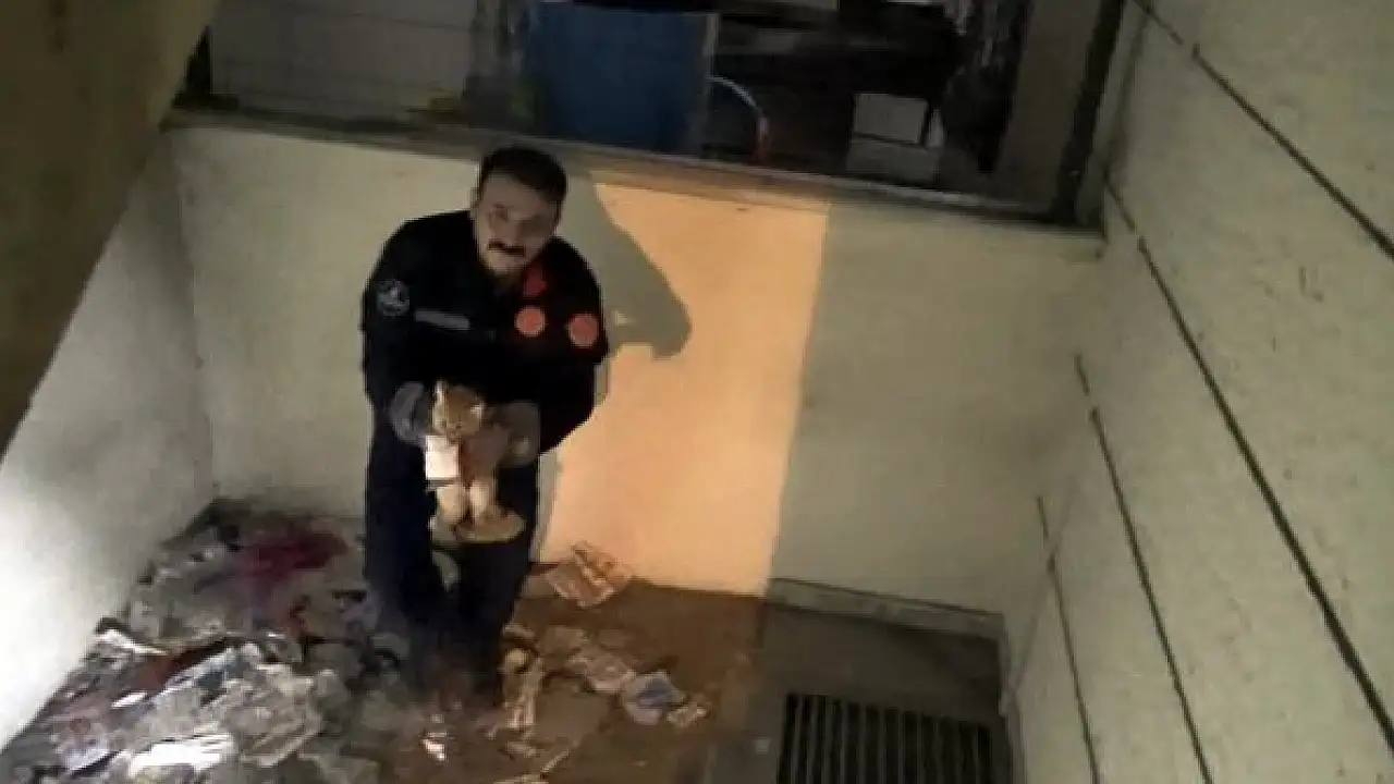 Gümüşpala Mahallesi'ndeki Rıza Bey Sokak'ta bulunan bir binanın önündeki mazgala girdikten sonra çıkamayan yavru kedi sürekli miyavlamaya başladı. Yoldan geçenler sesin mazgalda mahsur kalan yavru kediden geldiğini belirledi. Yavru kediyi çıkaramayan çevredekiler dün akşam saatlerinde itfaiyeden yardım istedi. Gelen itfaiye ekibi kazma ile mazgalların aralayarak yavru kediye ulaşmaya çalıştı. Kısa sürede demir parmaklıklar açılırken yavru kedi çıkarıldı.