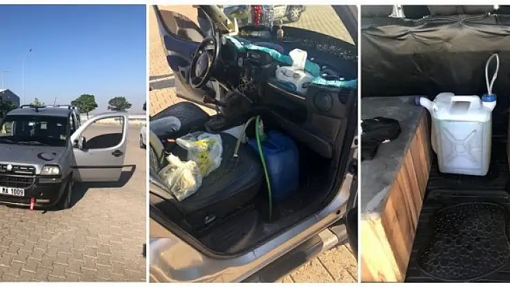 A.H., ekipler tarafından gözaltına alınırken, araçta bulunan materyallere de el konuldu.