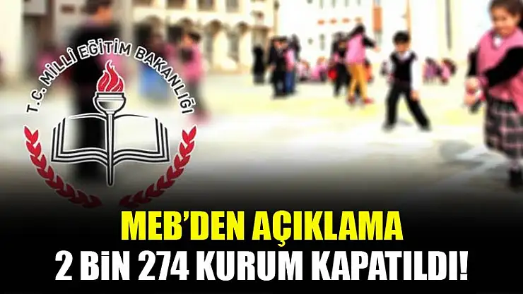 MEB'den açıklama! 2 bin 274 kurum kapatıldı