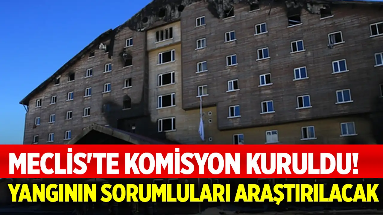 TBMM Genel Kurulunda, Bolu Kartalkaya Kayak Merkezi'ndekio Grand Kartal Otel'de çıkan yangının tüm yönleriyle araştırılması amacıyla Meclis Araştırma Komisyonu kuruldu.