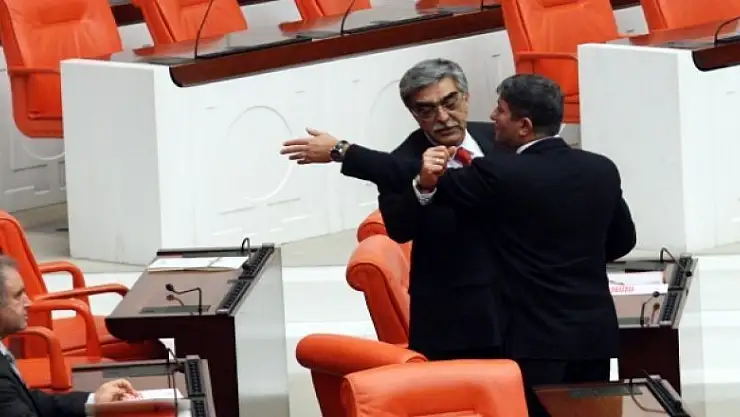 TBMM Genel Kurulunda MHP milletvekilleri Mehmet Necmettin Ahrazoğlu ve Ahmet Selim Yurdakul ile CHP Grup Başkanvekili Engin Altay, anayasa konusunda tartıştı. MHP'li Erkan Haberal, vekilleri sakinleştirmeye çalıştı.