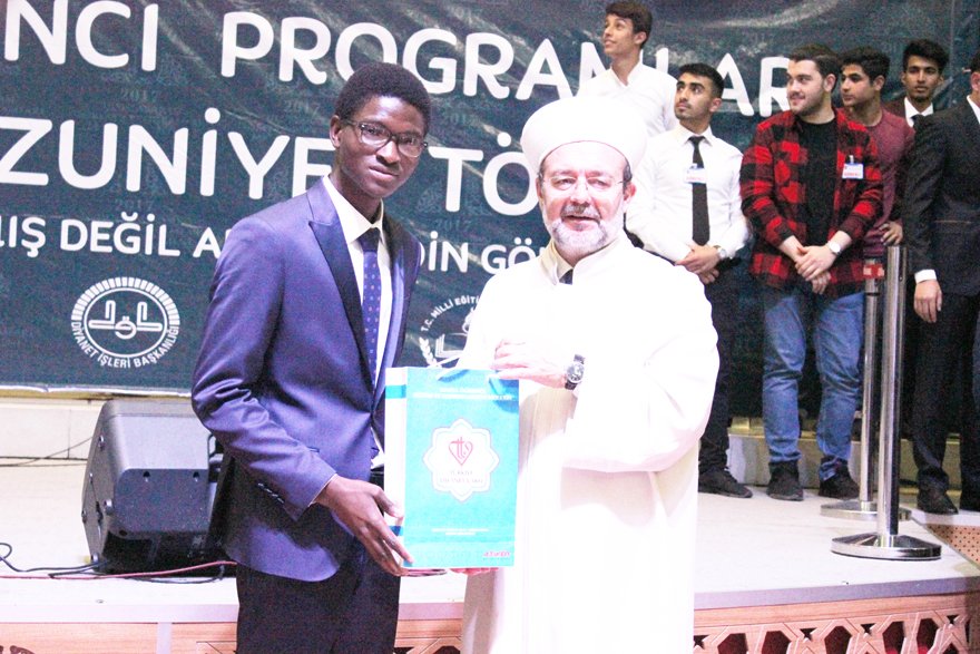 7 kıtadan iman dolu gençlerle birlikte olmanın mutluluğunu yaşadığını ifade eden Diyanet İşleri Başkanı Mehmet Görmez, Bu genç kardeşlerimiz bizim yaptığımız iyilikten bahsettiler ancak asıl siler bize iyilik yapıyorsunuz. Afrika’dan, Asya’dan, Uzak Doğu’dan ve dünyanın dört bir yanından gelen gençler asıl bize iyilik yaptığımız biz teşekkür ediyoruz. Konya sizin nasibiniz değil, siz Konya’nın nasibisiniz. Siz Konya’ya değil, Konya size teşekkür ediyor. Siz Türkiye’ye değil, Türkiye size teşekkür ediyor. Fani, naçiz bir insanın kısacık dünya hayatında mutlu olduğu anları vardır. İnanın en mutlu anlarımı yaşadım. Uluslararası İmam Hatip Lisesi Bozyazı da bir okula hapsedilmiş küçücük bir projeydi. Hamd olsun bugün binleri bulan öğrencileriyle İstanbul’da, Bursa’da, Konya’da, Kayseri’de, Sivas’ta ve yakın gelecekte Türkiye’nin her yerinde, dünyanın dört bir yanından öğrenciler olacak. İkinci hülyamız Avrupa’daki millet varlığımızın çocukları Türkiye’de İlahiyat Fakültesi okusun istemiştik. Bugün de bu fakülteden kardeşlerimiz mezun olmaya başladılar.” ifadelerini kullandı.